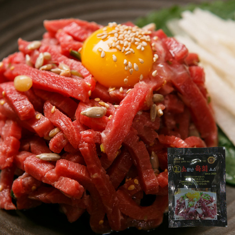 육사시미, 뭉티기, 우둔살, 생고기, 업소용, 육회, 소스, 간장소스