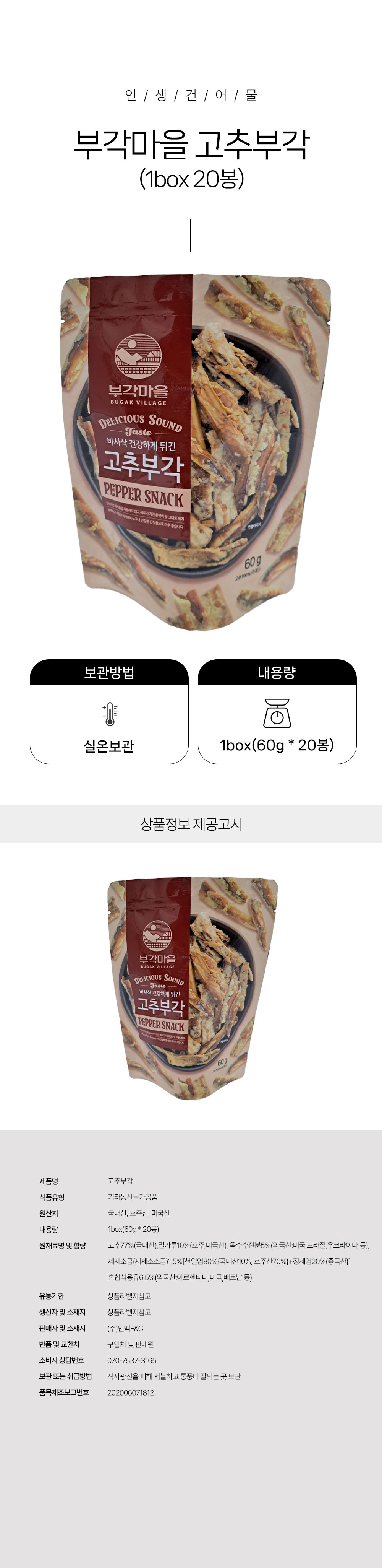 [박스무배] 부각마을 고추부각 1box(60g*20봉)