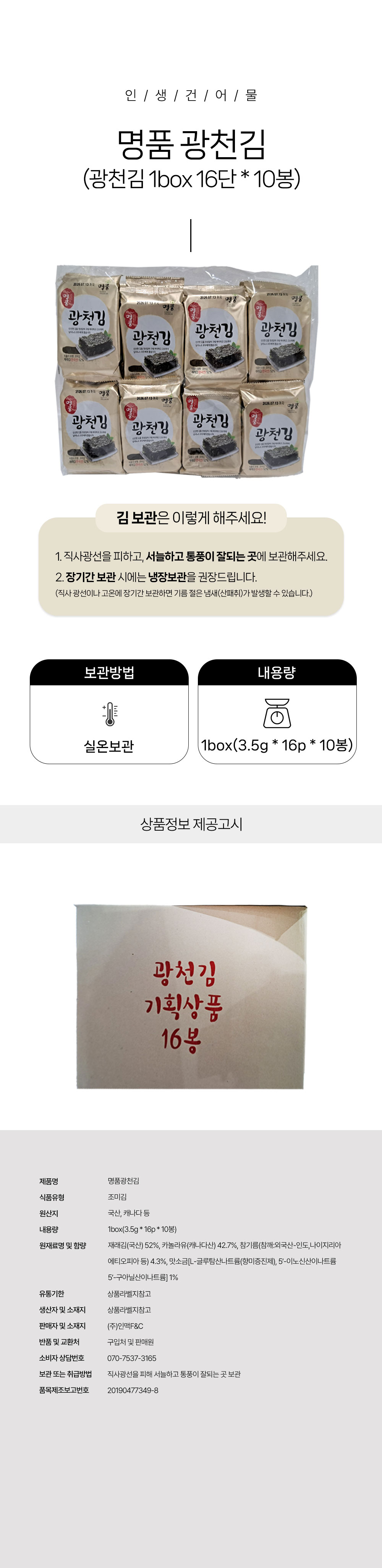 [박스무배] 명품 광천김 1box(3.5g*16p*10봉)