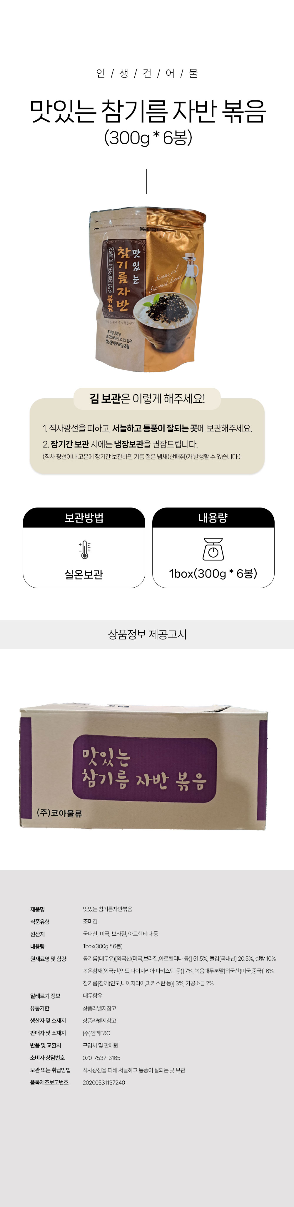 [박스무배] 맛있는 참기름 자반볶음 1box(300g*6봉)