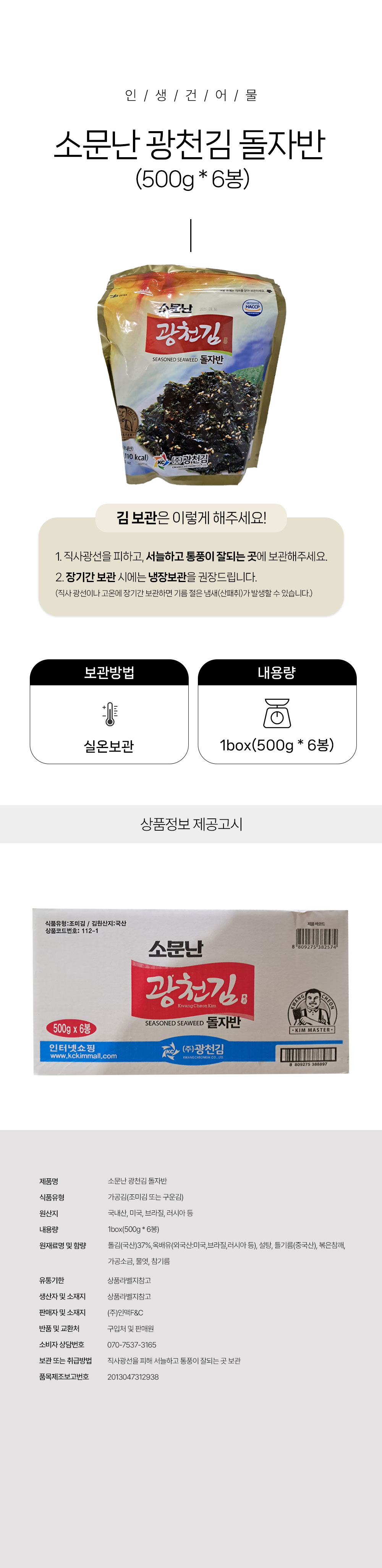 [박스무배] 소문난 광천김 돌자반 1box(500g*6봉)