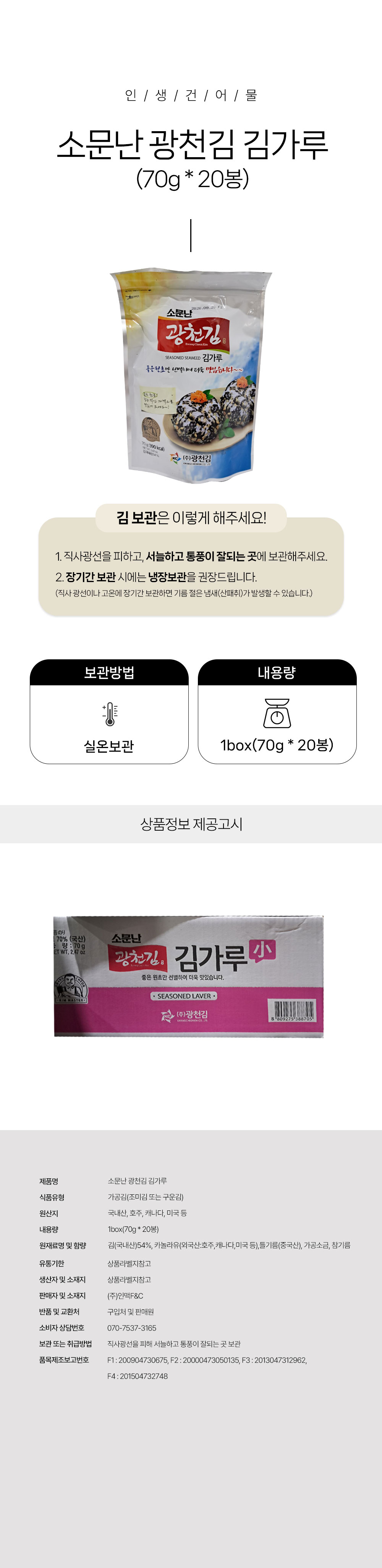 [박스무배] 소문난 광천김 김가루 1box(70g*20봉)
